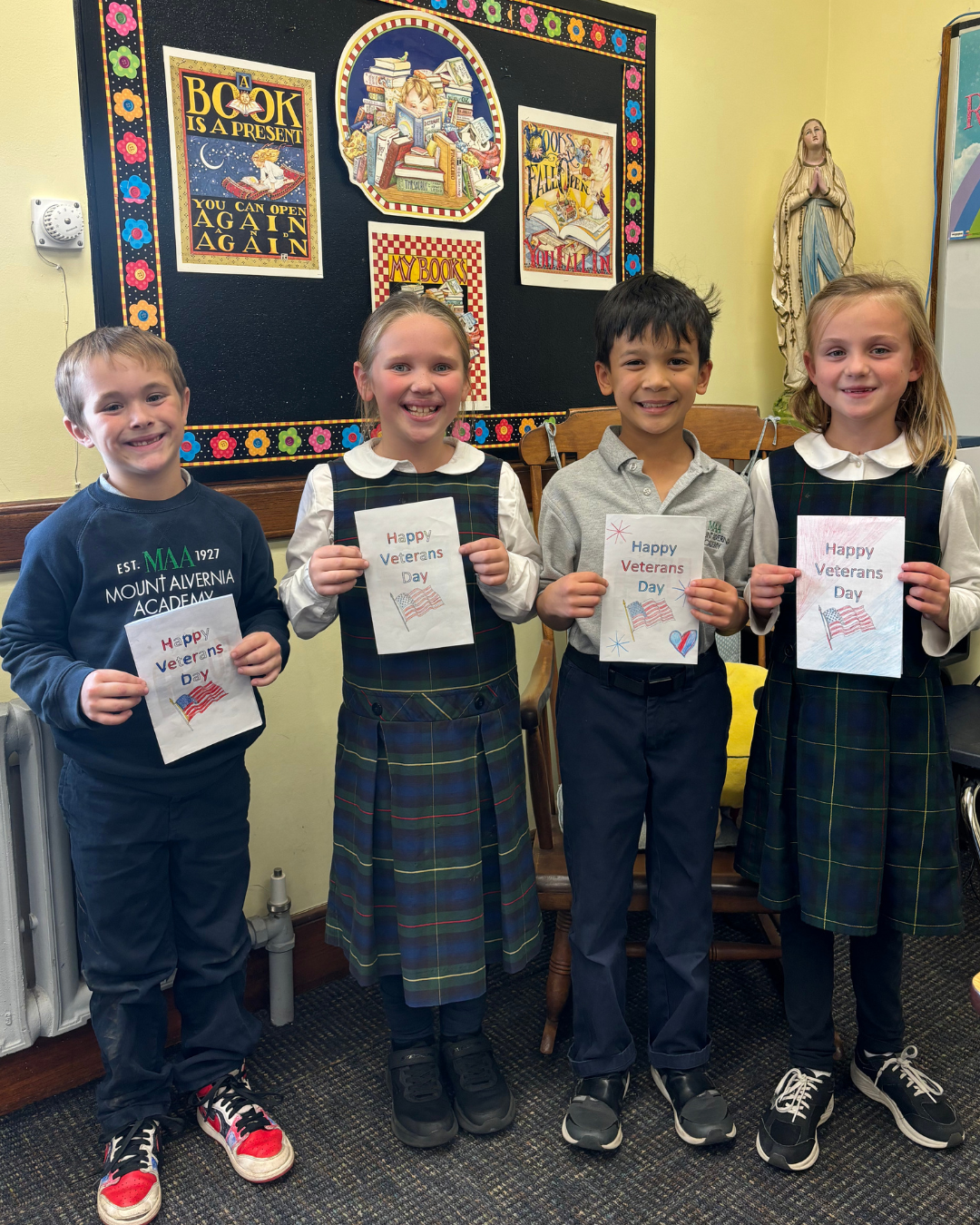 Veterans Day Service Projects At the heart of our school is a deep commitment to service. Rooted in our Franciscan tradition, students begin learning about and participating in age-appropriate service projects as early as preschool—discovering the joy of helping others. Our Preschool through Grade 6 students continued a cherished annual tradition of donating Halloween candy to veterans and making heartfelt thank-you cards. Our community’s generosity overflowed… so much that some of the candy will even be sent overseas! Thank you to our students and their families for living our mission to share gifts with others and for making a meaningful difference.